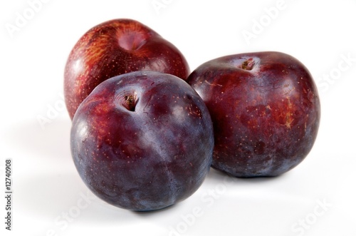 © emu, Obraz premium Three red plums on a white background.