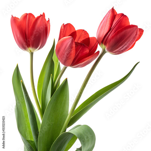 © Design Splash, Fototapeta premium three red tulips in bloom a vibrant spring bouquet, isolated on white background png