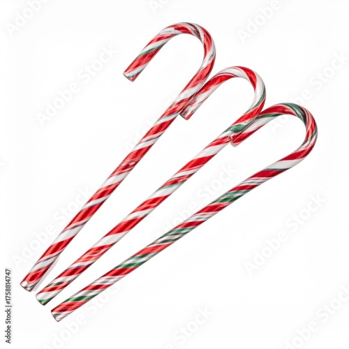 Fototapeta premium Three Red White Candy Canes on White Background Stock Photo