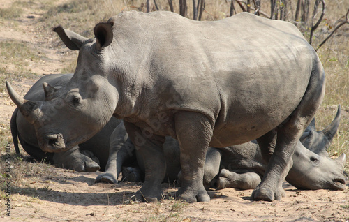 Fototapeta premium Three Rhinoceros (Rhinocerotidae) - South Africa.
