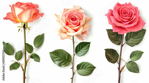 © mattegg, Fototapeta premium Three Roses on a White Background