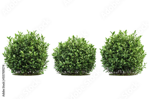 © Umer, Fototapeta premium Three round bushes on black Green leaves garden design backyard landscaping nature scene flora