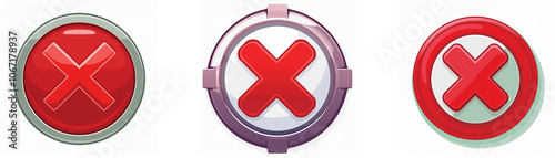 Fototapeta premium Three round red buttons with a red X on the inside, each with a different...
