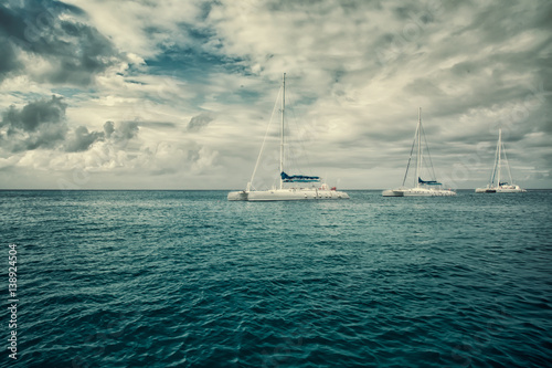© anna_shepulova, Fototapeta premium three sailboats in the sea
