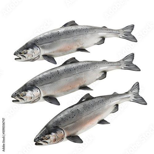 © juwairiya_nameera, Obraz premium Three Salmon Fish on a White Background