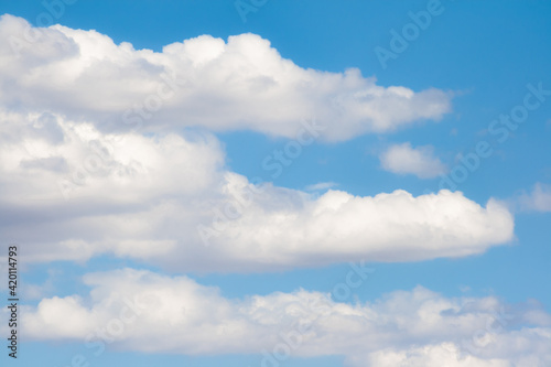 Obraz premium Three scattered cloud clusters with a nice blue sky in the background