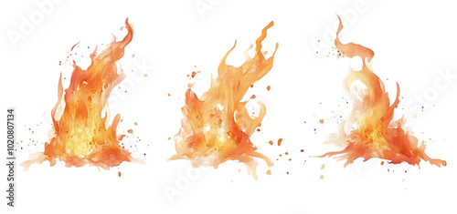 Fototapeta premium three set of fire flame isolated transparent background