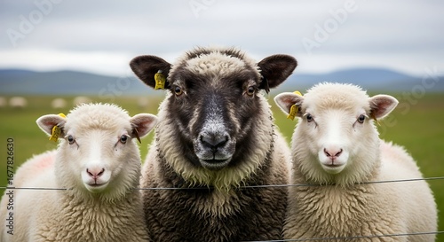 © Merry, Fototapeta premium Three Sheep Looking at the Camera.