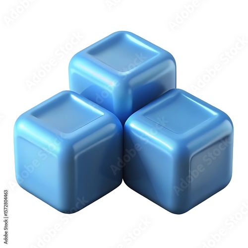 © MDMasud, Fototapeta premium Three shiny blue rounded cubes arranged in a triangular formation on a white background