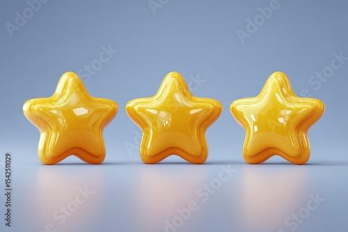 © LimeSky, Obraz premium Three shiny yellow stars Game achievements Client feedback on website employee Realistic 3D design for mobile apps Vector graphic