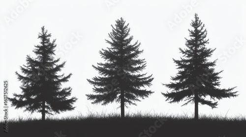 © nattaya, Fototapeta premium Three silhouette pine trees