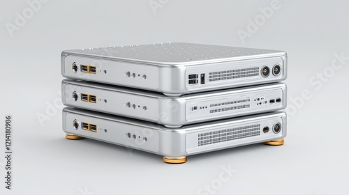 © tinnakorn, Obraz premium Three silver and gold decorative boxes on a white background three