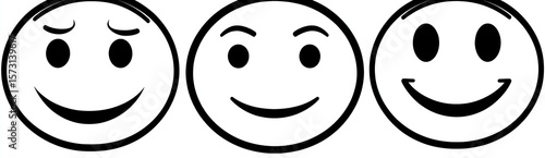 Fototapeta premium Three simple black and white emoticons, showing different expressions