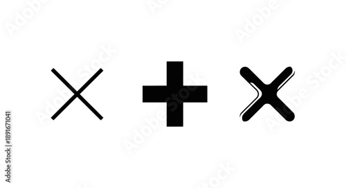 Obraz premium Three simple black symbols an x a plus and a tilted x