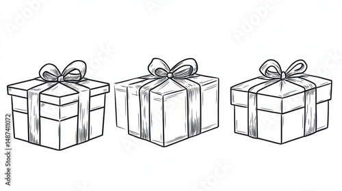 © Mundhut, Obraz premium Three simple gift boxes, outlined, holiday graphic