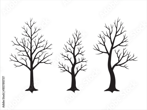 © Asradul, Obraz premium Three Simple Tree Silhouettes Isolated on Transparent Background