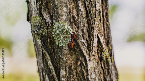 © kostas, Obraz premium three small Boxelder red insects on a tree close up