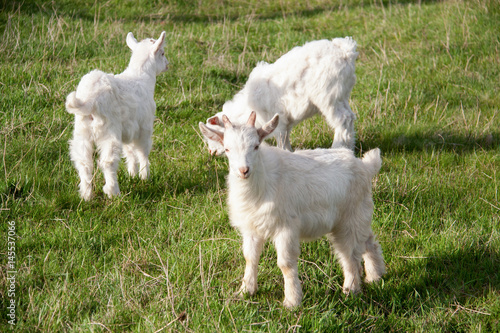Obraz premium Three small goat standing on green grass