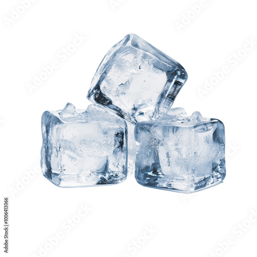 © Foxgrafy, Obraz premium Three sparkling ice cubes on a transparent background