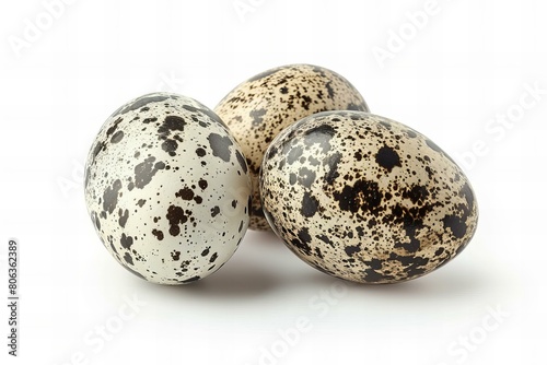 Obraz premium Three Speckled Quail Eggs Isolated on White Background