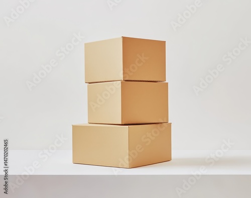 © adriyanca, Obraz premium Three stacked beige cardboard boxes