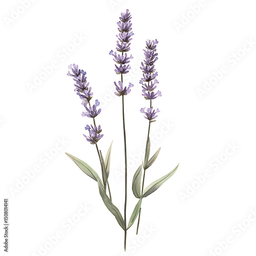 © Md Sorif, Naklejka premium Three Stalks of Fresh Lavender Flowers On A Black Background Image