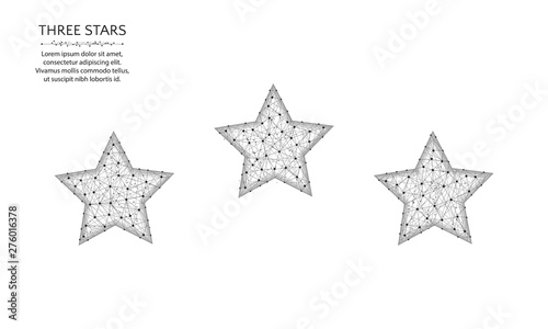 Obraz premium Three stars low poly design, Rating sign in polygonal style, favorite wire frame vector illustration on a white background