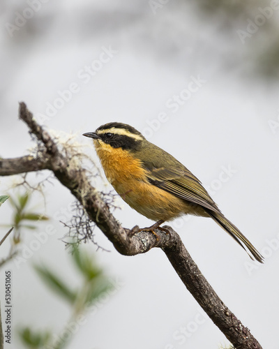 Fototapeta premium three striped Hemispingus perched on a stair-like branch