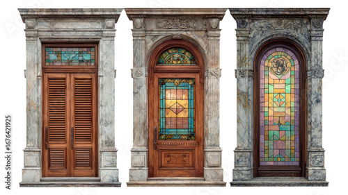 © Putra, Obraz premium Three Stunning Stained Glass Doors with Decorative Frames