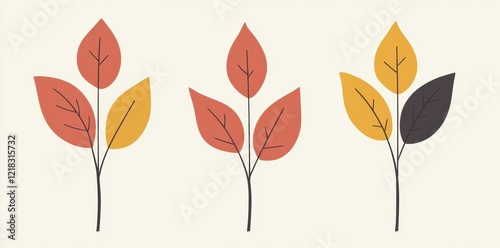 Fototapeta premium Three stylized autumn leaf sprigs in orange yellow and brown