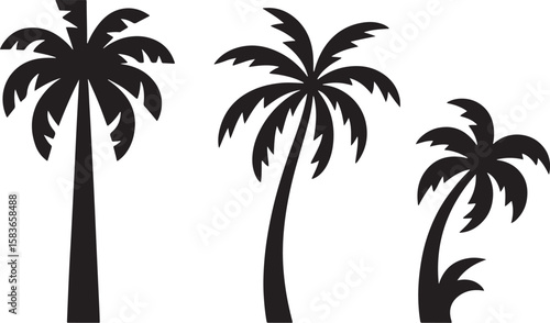 Obraz premium Three stylized black silhouettes of palm trees on a white background