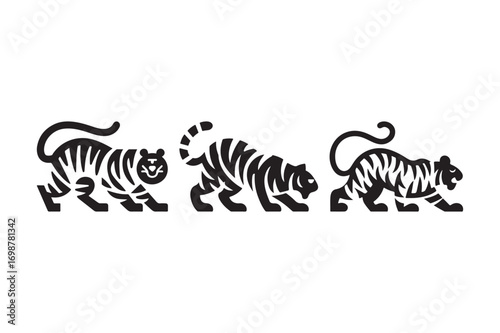 © Sadek, Fototapeta premium Three stylized black tigers in profile on a white background