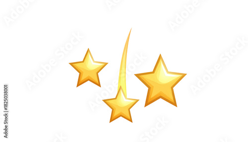 © Asriani, Obraz premium Three stylized, golden stars against a stark black background, one with a curved trail effect