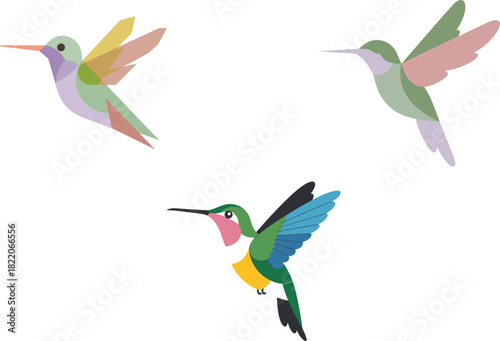 © bijoy, Obraz premium Three stylized hummingbirds in flight pastel colors