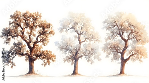© amin, Fototapeta premium Three stylized trees with varying colors and intricate branching patterns