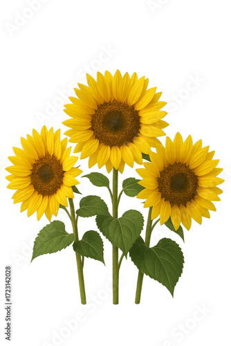 © Boris, Fototapeta premium Three sunflowers growing on transparent background