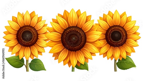 © Zhen, Naklejka premium Three sunflowers on white background
