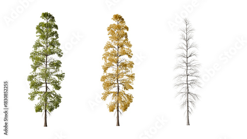 Fototapeta premium Three Tall Trees Showing Different Seasonal Changes