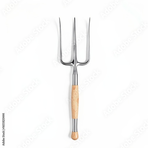 © lnwAI, Fototapeta premium Three-Tined Garden Hoe with Wooden Handle isolated on White Background