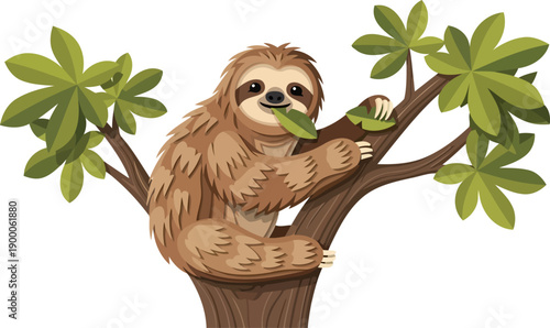 © creative, Fototapeta premium Three-toed sloth hanging from tropical tree branch