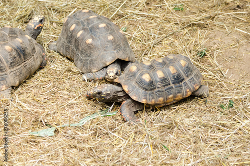 Obraz premium Three tortoises inside their natural enclosure