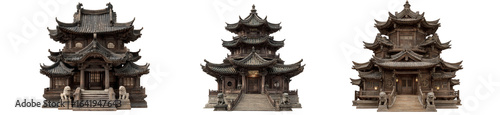 Fototapeta premium Three traditional asian temples isolated on transparent background