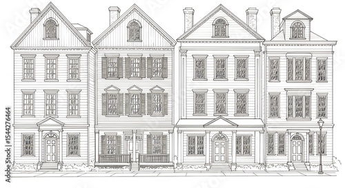 © Andi, Fototapeta premium Three traditional buildings line drawing
