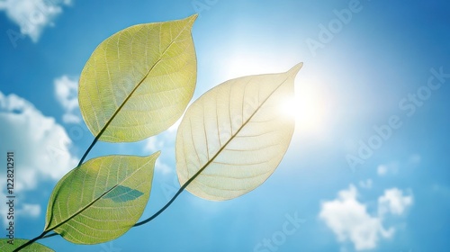 © Penatic Studio, Obraz premium Three translucent leaves backlit by bright sunshine