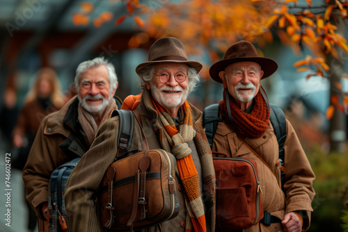 © Kepa, Fototapeta premium Three travelling grandparents exploring the city