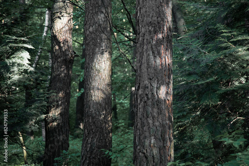 © alan, Obraz premium Three tree trunks at forest . Natural background .