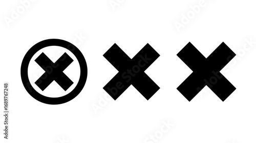 Obraz premium Three variations of black cross mark icons including a circled cross ideal...