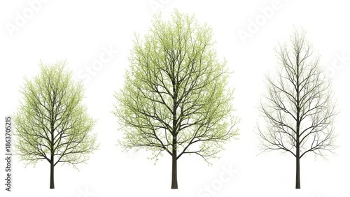 © ayub, Fototapeta premium Three Vector Trees Isolated on White Background, Spring Season
