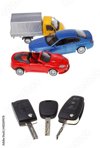 © vvoe, Fototapeta premium three vehicle keys and model cars