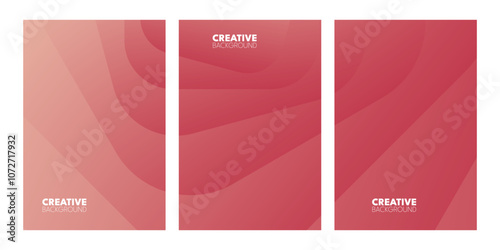 © Thoha Firdaus, Obraz premium Three vertical panels of overlapping, light to dark, rose-colored, curved shapes.